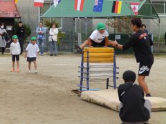 (第3部・みどり組)体操教室、リズム(フラッグ)、親子競技、リレー