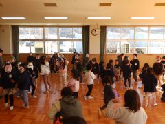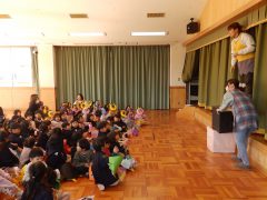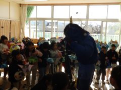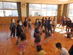 「鬼のパンツ」を踊ったり、節分にちなんだ「落ちた落ちたゲーム」を楽しんだ後、
