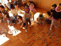 子ども達が鬼に見立て合いながら豆まきごっこを行いました。